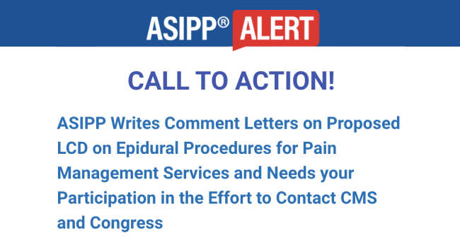 A proposed LCD on Epidural Procedures for Pain Management services was announced on June 10, 2021. This nationwide policy contains many onerous changes that will detrimentally affect patient access to care. ASIPP has written comment letters with detailed explanations of the issues and needed changes to each Medicare Contractor.