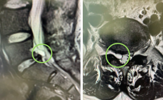 Nice reminder that not all nerve root compression is discogenic in nature. This 43 year old man presented with nerve root symptoms caused by a facet joint cyst that need aspiration. Symptoms improved immediately!